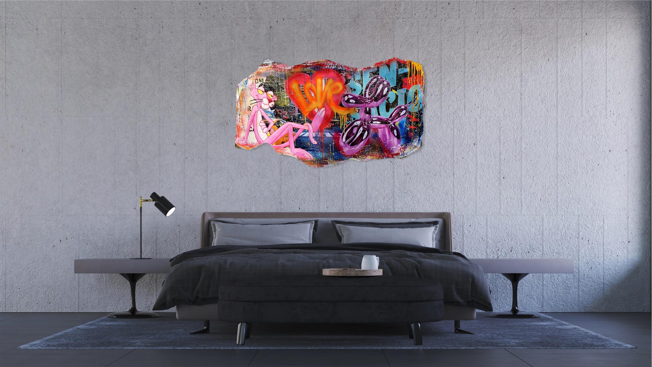 Meine crazyclouds sind mehr als Kunstwerke – sie sind Teil des Raumes. Direkt auf Wänden entfalten sie ihre volle Wirkung und verbinden sich mit Architektur, Licht und Atmosphäre.